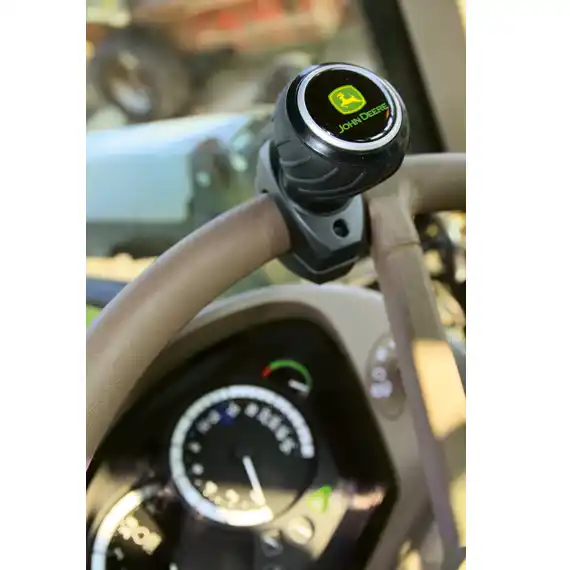 Der Deluxe Lenkrad-Knauf von John Deere erleichtert das Rangieren und Manövrieren von Traktoren und Maschinen mit Rundlenkrad. Die robuste Ausführung und das grüne John Deere Logo machen ihn zum praktischen und optischen Highlight.