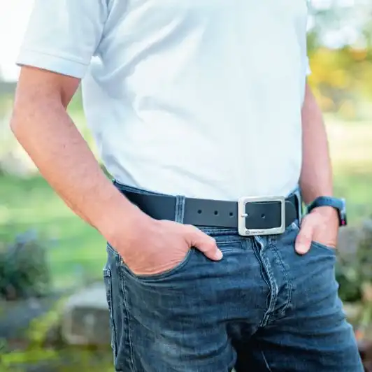 - Robuste Metallschnalle mit geprägtem John Deere Logo